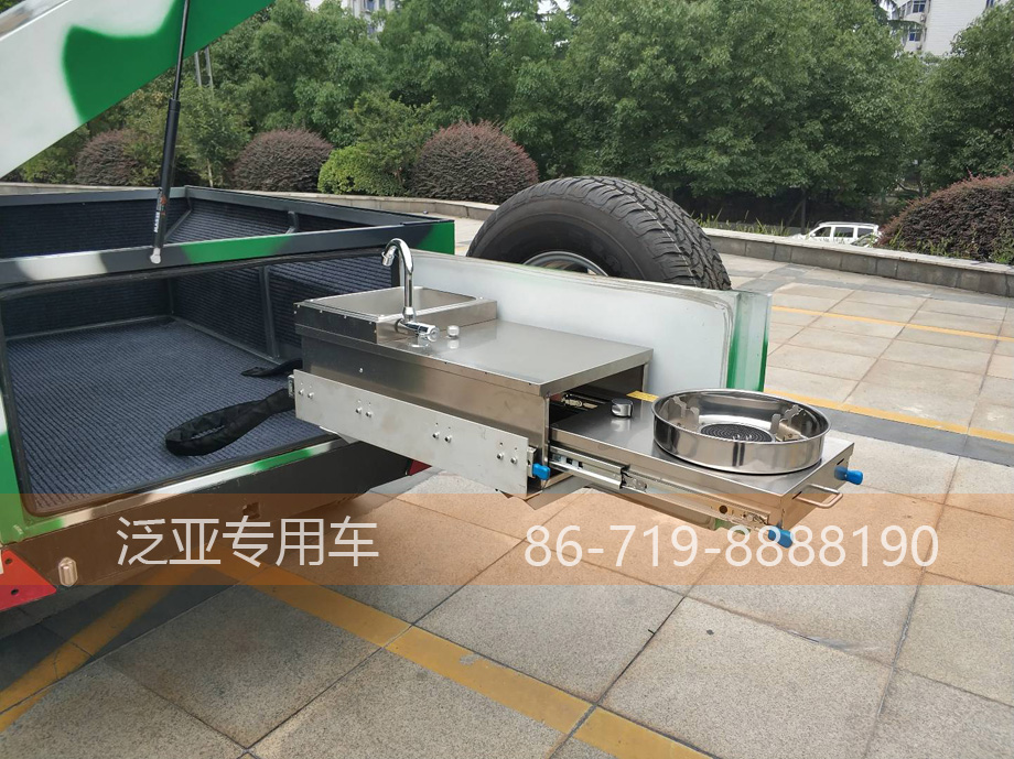 为什么是房车?难道它真的只是因为他的帐篷提供了睡觉的地方?帐篷房车还有一大特点是能带你所想,随时让你组装家庭、朋友聚餐的露天party。三大储物空间。前有铝合金材质的储物空间,中有裸露开放的储藏隔短,后有最大内置仓库,完全不用担心各种露营所需的小板凳和小桌椅。再加一个85L的清水箱、一个简易厨房,就等你垂钓收获后的美食佳肴。