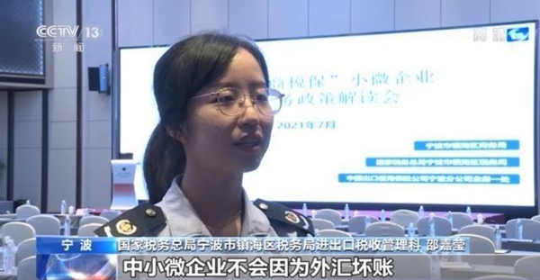国家税务总局宁波市镇海区税务局进出口税收管理科一级行政执法员 邵嘉莹:中小微企业不会因为外汇坏账影响退税款的申请,减轻企业资金压力。