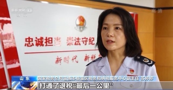 国家税务总局淄博市临淄区税务局纳税服务中心副主任 苏婷婷:我们强化税务国库联动,与中国人民银行第一时间进行沟通协调,实时共享退税信息,将退税各环节的时间压缩至最短,打通了退税“最后一公里”。