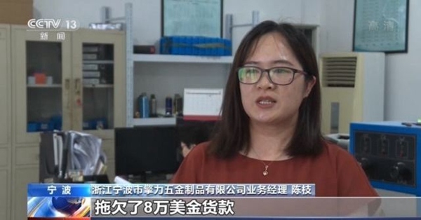 浙江宁波市擎力五金制品有限公司业务经理 陈枝:我们遇到一个中东客户,拖欠了8万美金货款。