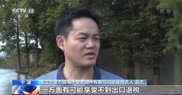 浙江宁波市镇海华隆紧固件有限公司企业负责人 赵杰:不能及时收到货款,一方面有可能享受不到出口退税,反而要补缴税款,这样一来,让我们出口小微企业的现金流难上加难。