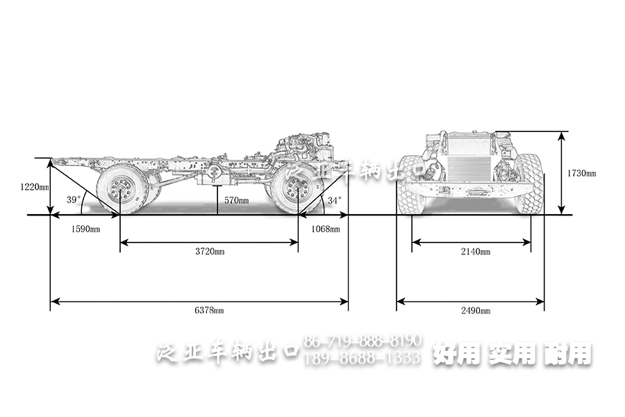 三类底盘尺寸(含仪表台) 6378×2490×2080mm