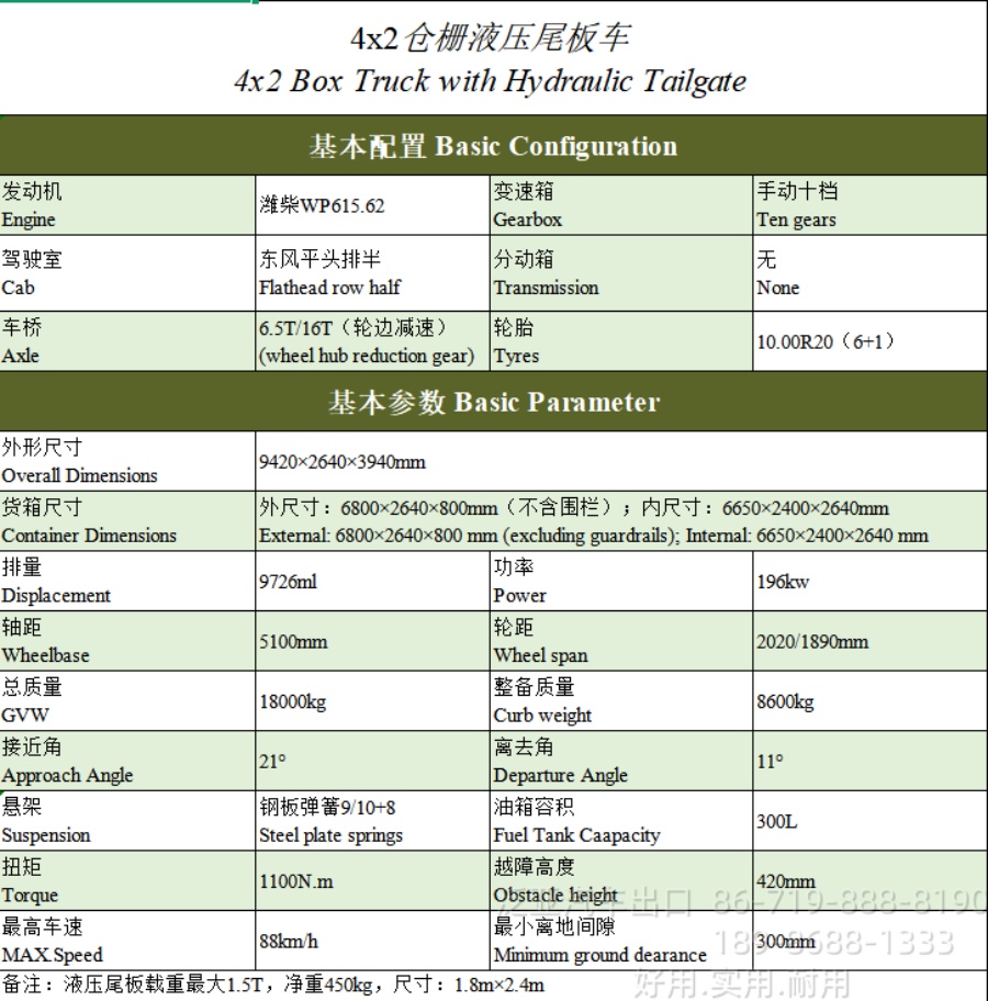 东风4*2液压尾板车-东风平头排半-4*2液压尾板运输车