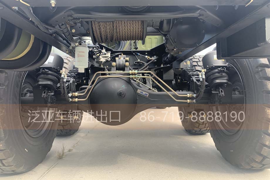 车上装有冷启动系统、副油箱、机油桶、水桶、篷布篷杆、工具箱等军用附加装置,可在-41℃环境温度下能顺利启动