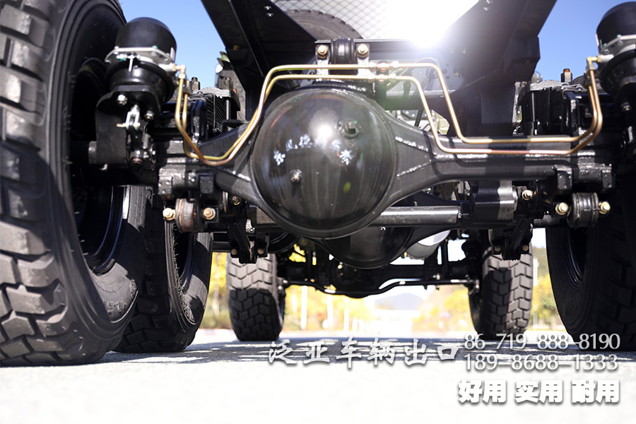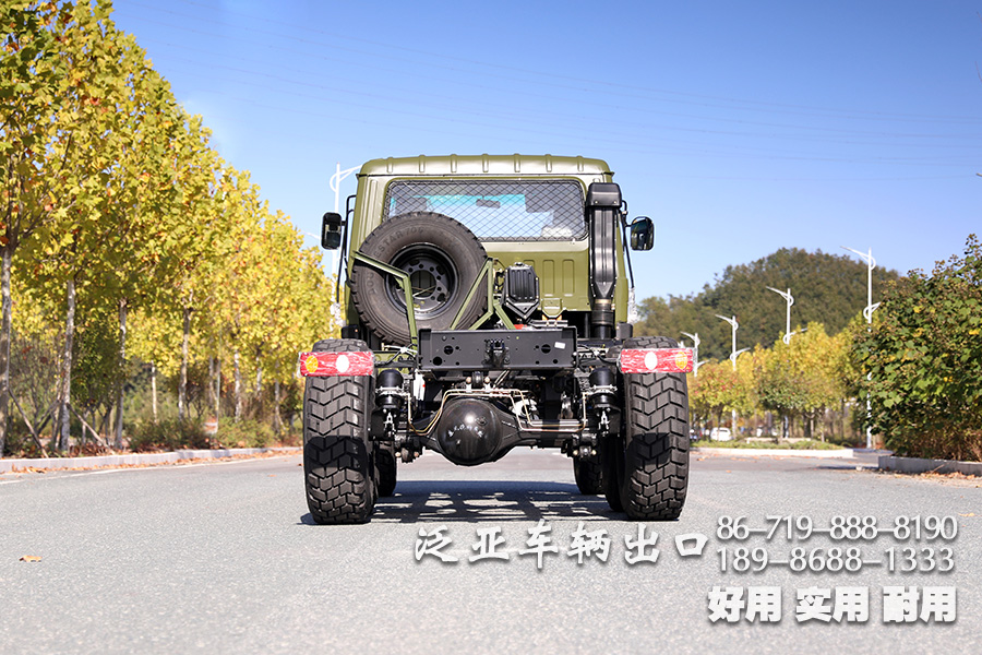 车上装有冷启动系统、副油箱、机油桶、水桶、篷布篷杆、工具箱等军用附加装置,可在-41℃环境温度下能顺利启动;可选装绞盘。